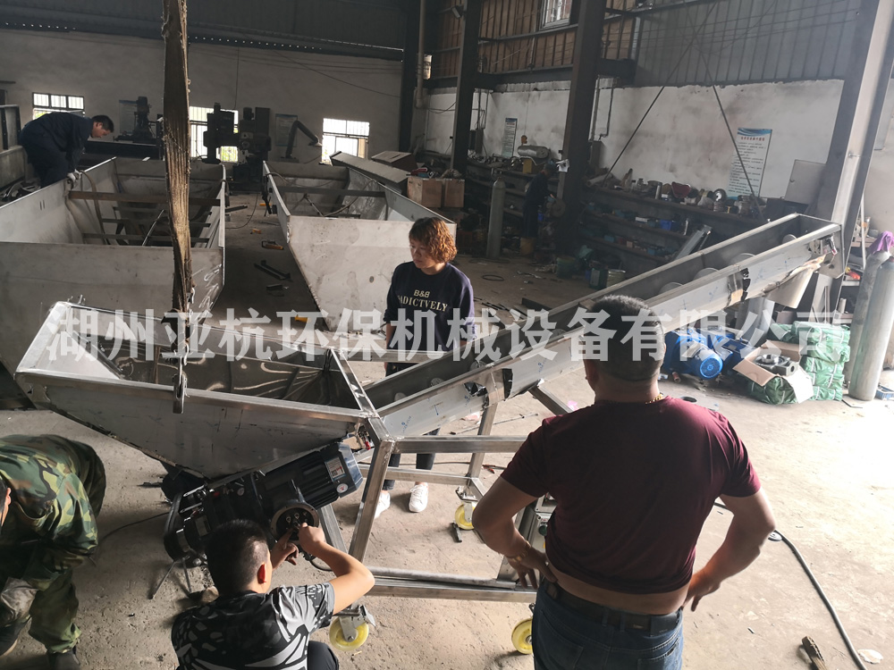 湖州亞杭螺旋輸送機為客戶定制的斗式無軸螺旋輸送機正在最后調試整改階段,即將完工!調好就可以將該臺斗式螺旋輸送機嫁人了!